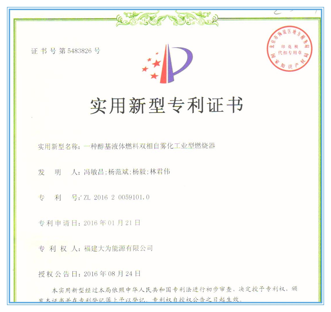 一种醇基液体燃料双相自雾化工业型燃烧器